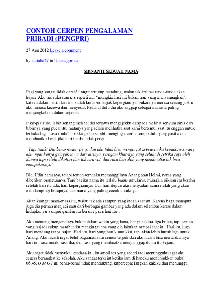 Contoh Kerangka Cerpen Pengalaman Pribadi : Contoh Karangan Narasi Singkat Pendidikan Pengalaman Kesehatan Dosenpintar Com / Contoh kerangka cerpen pengalaman pribadi.. We did not find results for: Maybe you would like to learn more about one of these? Check spelling or type a new query. Contoh kerangka cerpen pengalaman pribadi.